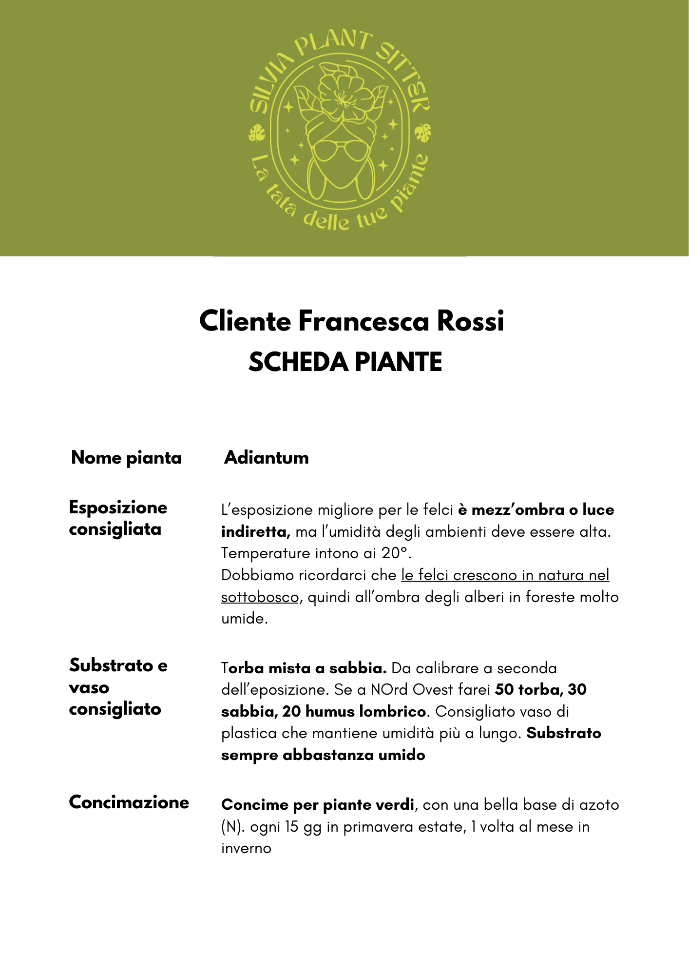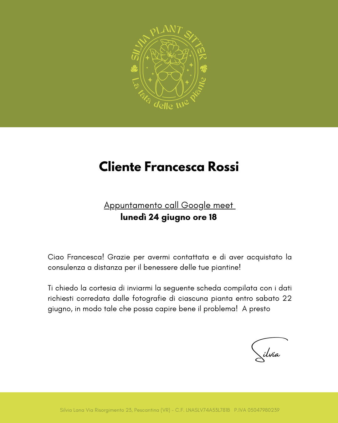 Dopo la call riceverai una scheda dedicata alle tue piante: il recap, le soluzioni, i passaggi da seguire, e tutto quello che ti serve per prendertene cura con sicurezza.